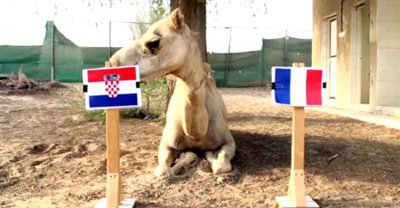 উটের সামনে দুটি কাঠিতে করে দুই দেশের পতাকা রাখা হয়। তারপর উটটি একটি পতাকাকে বেছে নেয়। এর মাধ্যমেই নির্ধারিত হয়ে থাকে ম্যাচটি আসলে কোন দেশ জিতবে। এবার উট ‘শাহীন’ ফাইনালের বিজয়ী হিসেবে বেছে নিয়েছে ক্রোয়েশিয়াকে। তাহলে কি ২০০৬ সালের মত এবারও ফাইনাল থেকে খালি হাতে বিদায় নিবে ফ্রান্স? প্রশ্নটা তোলা থাক ফাইনালের জন্যই। একুশে মিডিয়া।